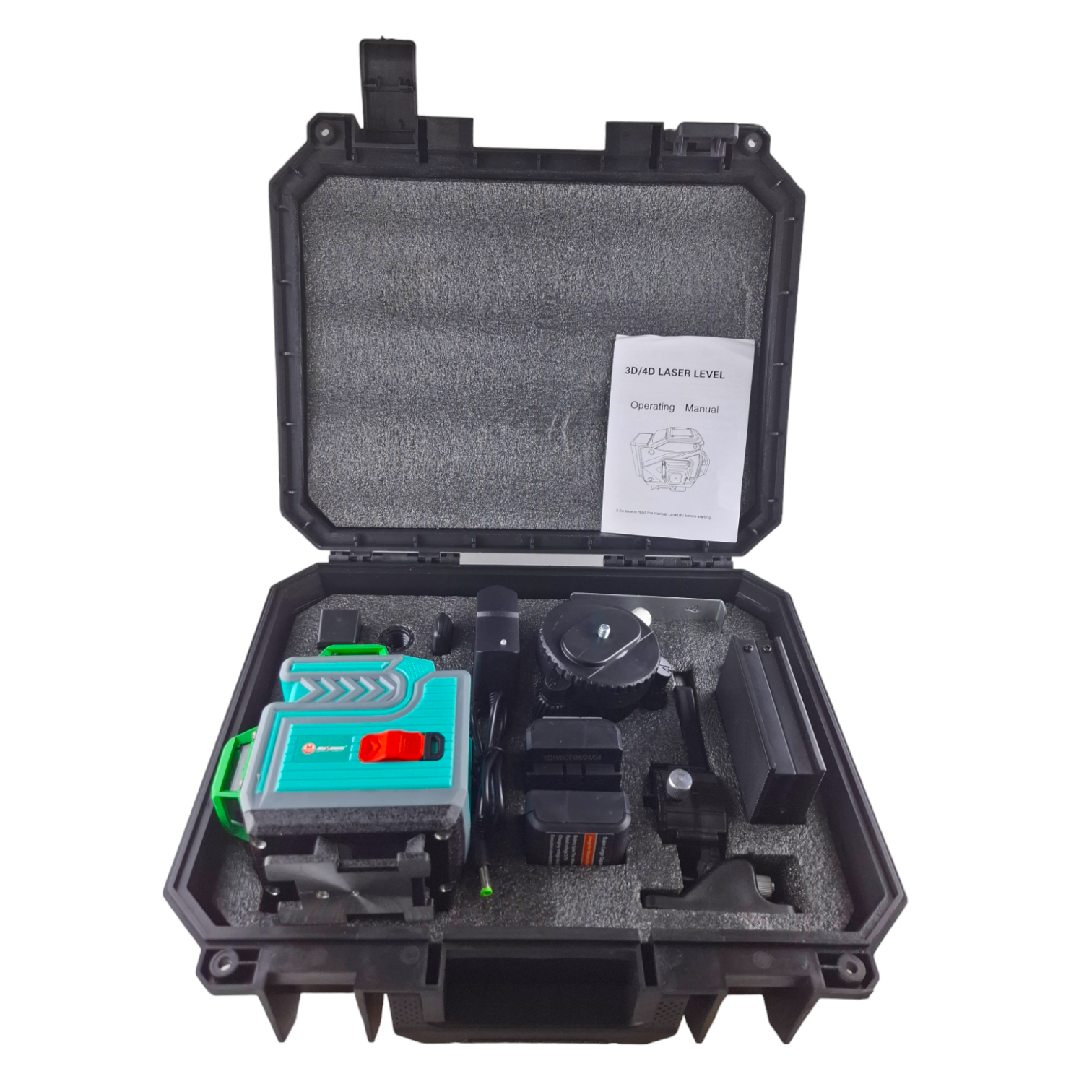 В комплекте поставляется: кейс, нивелир, очки, кронштейн с раздвижным вертикальным и наклонным механизмом, литиева