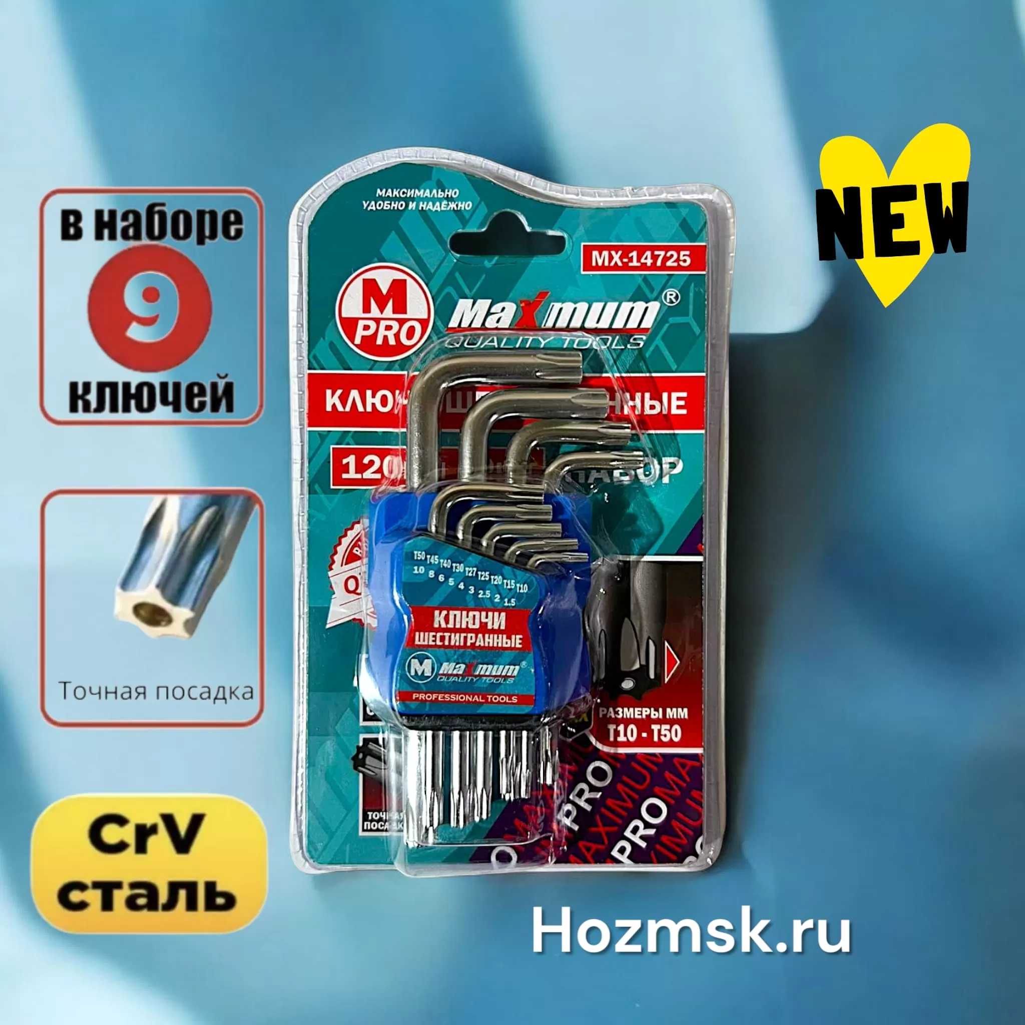 Набор шестигранников TORX мини из 9 предметов, T10-T50 мм, 120 мм, "MAXIMUM" MX 14725