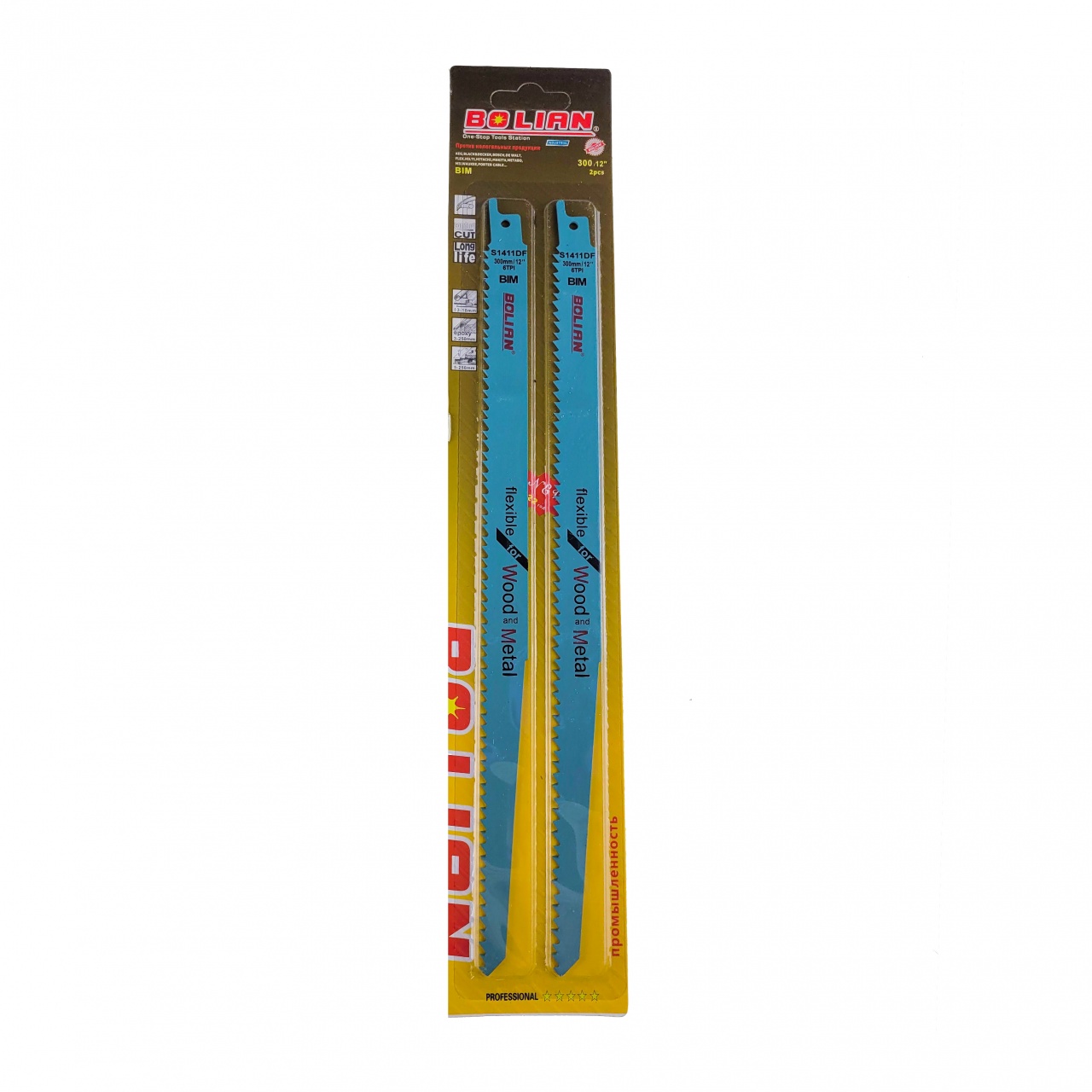 Полотно для сабельной пилы 6 TPI 300 мм,«Bolian», S1411DF
