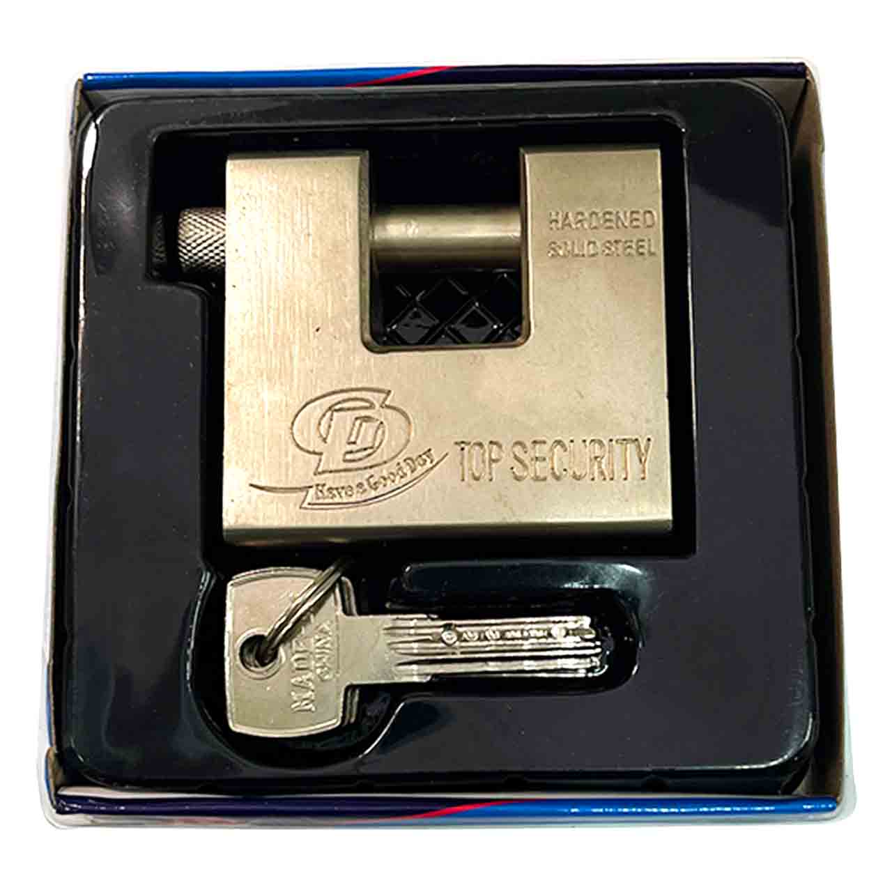 Навесной полузакрытый замок оборудован надежным цилиндровый механизмом, в дополнение к которому поставляется 4 перфорированных ключа. П-образный замок имеет прямую дужку - ригель из закаленной стали, который при закрытии углубляется в корпус.